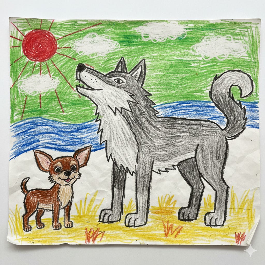 Bob: Precisely! And here is the way to solve that. We recognize that "wolf" and "dog" are just names we've given retrospectively based on their characteristics. Each time a new dog is born, it ever so slightly shifts what it means to be a "dog". This is nearly imperceptible at human time scales, but as new breeds emerge, and new traits emerge in dogs (perhaps, dogs being bred to have longer snouts, or something), the definition shifts, ever-so-slightly. What it means to be a dog is, indeed, a moving target. If we had to define "dog" 10,000 years ago, it may not include the characteristics of a Chihuahua, which is to say, if a Chihuahua had appeared ex nihilo, the first people to encounter it would, perhaps, put it in the “fox” category, rather than the “dog” category. If they had genetics, they may note that it is closer to what they call a dog than a fox, but still balk at it being included in the dog category, and opt instead for it to be it’s own category, since a Chihuahua is quite far from what they considered a “dog” 10,000 years ago.